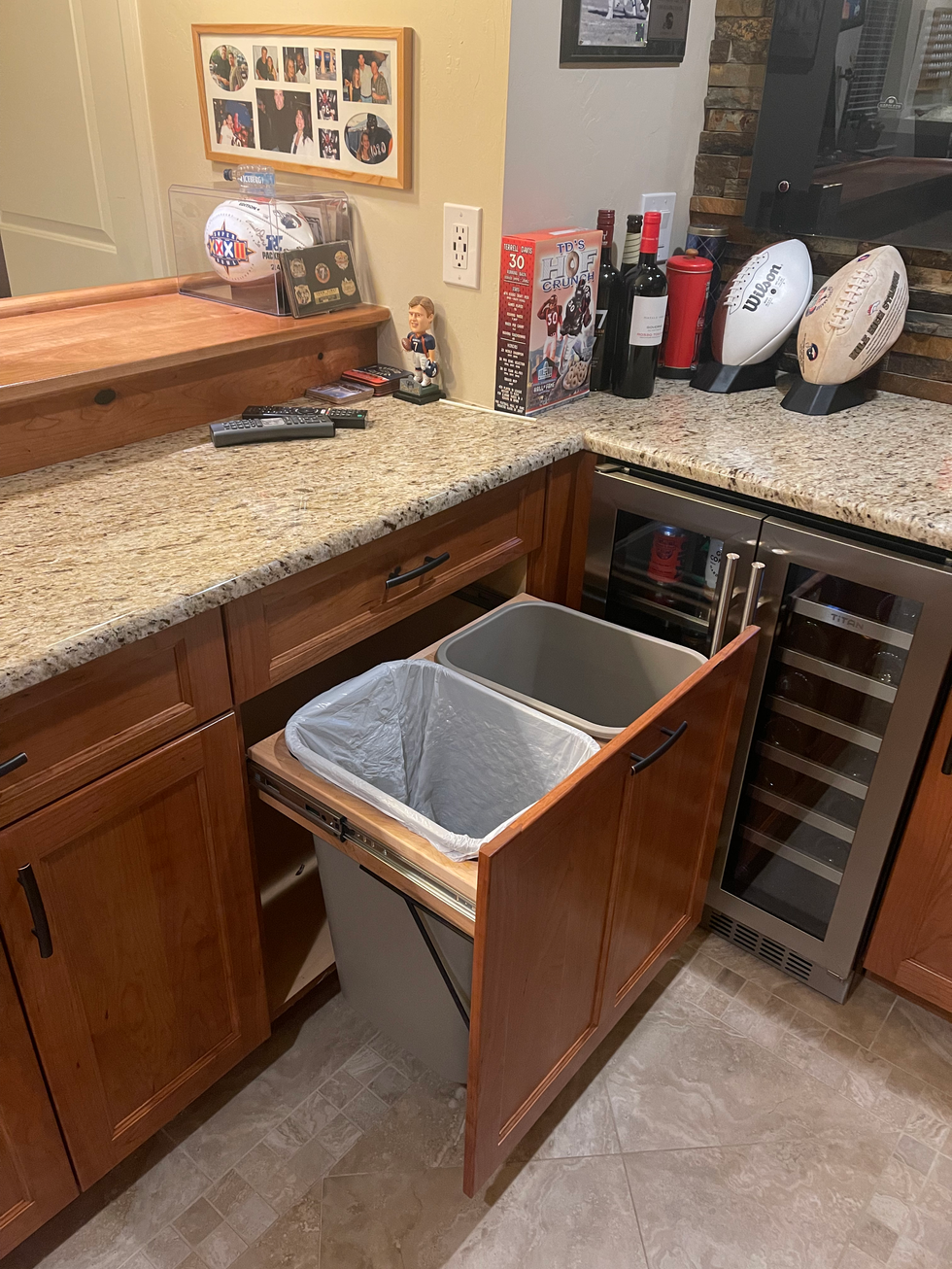 Custom Built Bar Top & Cabinets• Custom Cherry Cabinets with Natural Finish• Solid Cherry Bar Top